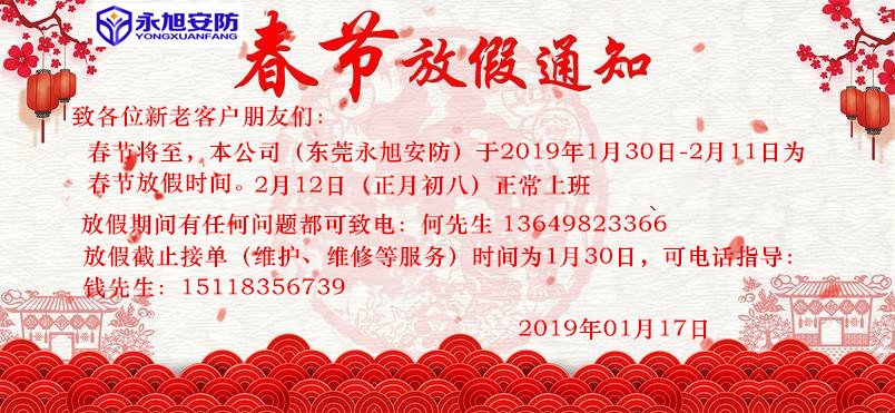 東莞永旭安防:19年春節(jié)放假通知