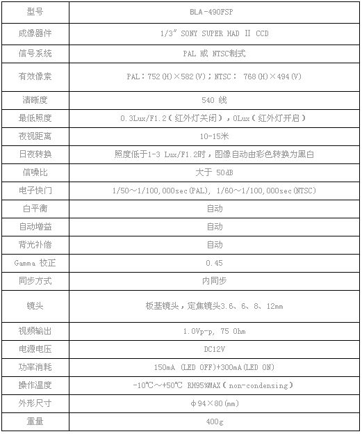 東莞監(jiān)控半球攝像機系統(tǒng)高清紅外半球攝像機參數(shù):